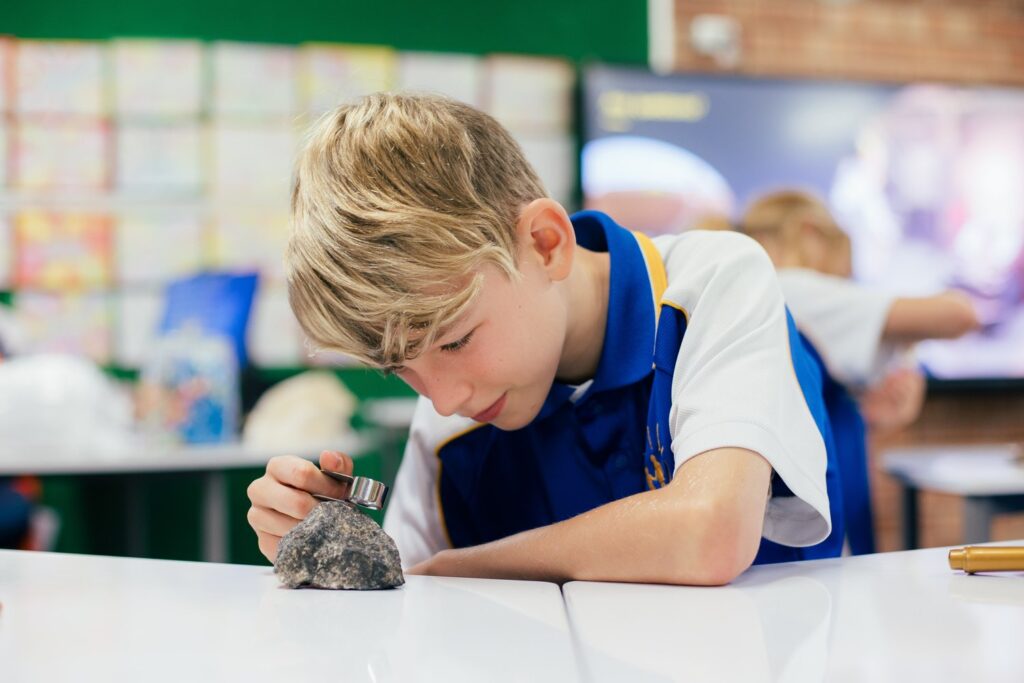 To further support learning, the Gold Industry Group provides schools across the country with Gold Resources Kits, featuring a range of educational resources aligned with the Australian Curriculum. These kits include rock and gold samples from Australian mines, along with supporting materials like geological hand lenses.